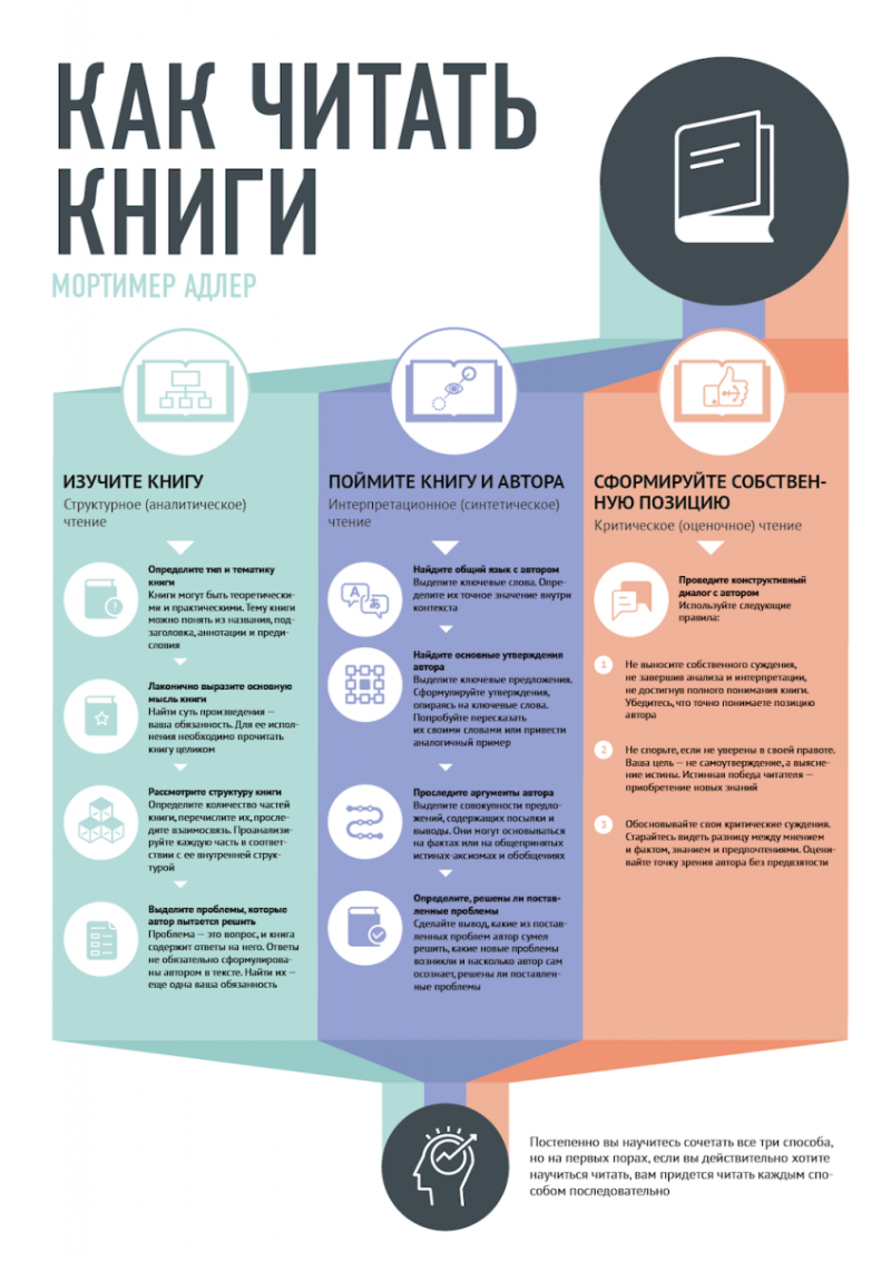 До школы осталось совсем немного. Но еще можно успеть прочитать много интересных книг - и по програме, и по велению души. А как это сделать правильно и с пользой, вам подскажет вот такая информация. Инфографика составлена по книге Мортимера Адлера “Как читать книги”. Наглядно, понятно, доступно! Читайте с удовольствием!