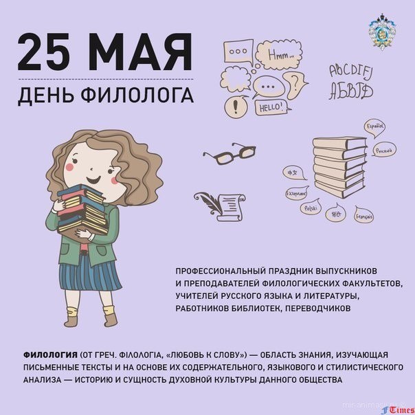 Ежегодно 25 мая в России отмечается День филолога. Эта дата является профессиональным праздником для всех, кто так или иначе связан с филологией — выпускникам и преподавателям филологических факультетов, учителям русского языка и литературы, работникам библиотек, переводчикам и просто ценителям родного языка и литературы. И логично, что он отмечается в нашей стране на следующий день после Дня славянской письменности и культуры. Филология (от греч. φιλολογία, «любовь к слову») — область знания, изучающая письменные тексты и на основе их содержательного, языкового и стилистического анализа — историю и сущность духовной культуры данного общества. Полагают, что филология возникла в Древней Индии и Греции. В связи с этим, классической филологией называют филологию греческого, латинского и санскритского языков. В 17-18 веках филология сложилась как наука, изучающая древнюю культуру (язык, литературу, историю, философию, искусство в их взаимосвязанности). С дифференциацией отдельных наук содержание понятия филологии изменилось: филологию стали понимать как совокупность наук, изучающих культуру народа, выраженную в языке и литературном творчестве. Поэтому современные филологи работают во многих областях истории, лингвистики и литературы, вносят большой вклад в сферу образования и исследований исторических ценностей. Значимость их профессии для общества трудно переоценить. И сегодняшний праздник - еще один повод поблагодарить людей данной профессии за их труд, выразив им почтение и уважение.