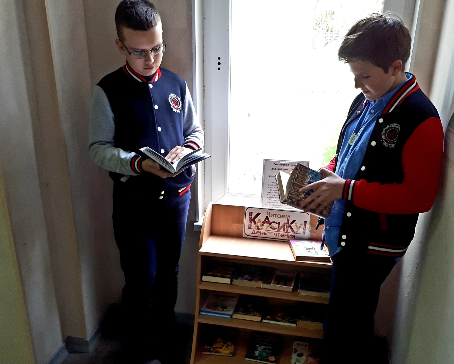 Также к Дню чтения было приурочено открытие книжной полки Crossbooking. На небольшом стелаже в фойе собраны книги, которые любой желающий может взять домой или читать в школе без всяких записей и читательских билетов. Условие только одно - прочитав книгу, нужно либо вернуть ее обратно, либо принести взамен другую. Отзывы на книги и рекомендации для следующих читателей приветствуются!