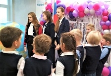 В эту короткую учебную неделю по гимназии дежурит 7-А класс. 6 ноября дежурная "пятерка" - Катя Шерстянникова, Маша Зорина, Милана Веселова, Ваня Парыгин и Володя Косолапов провели тематические перемены, посвященные Дню народного единства, который отмечается в России 4 ноября.
