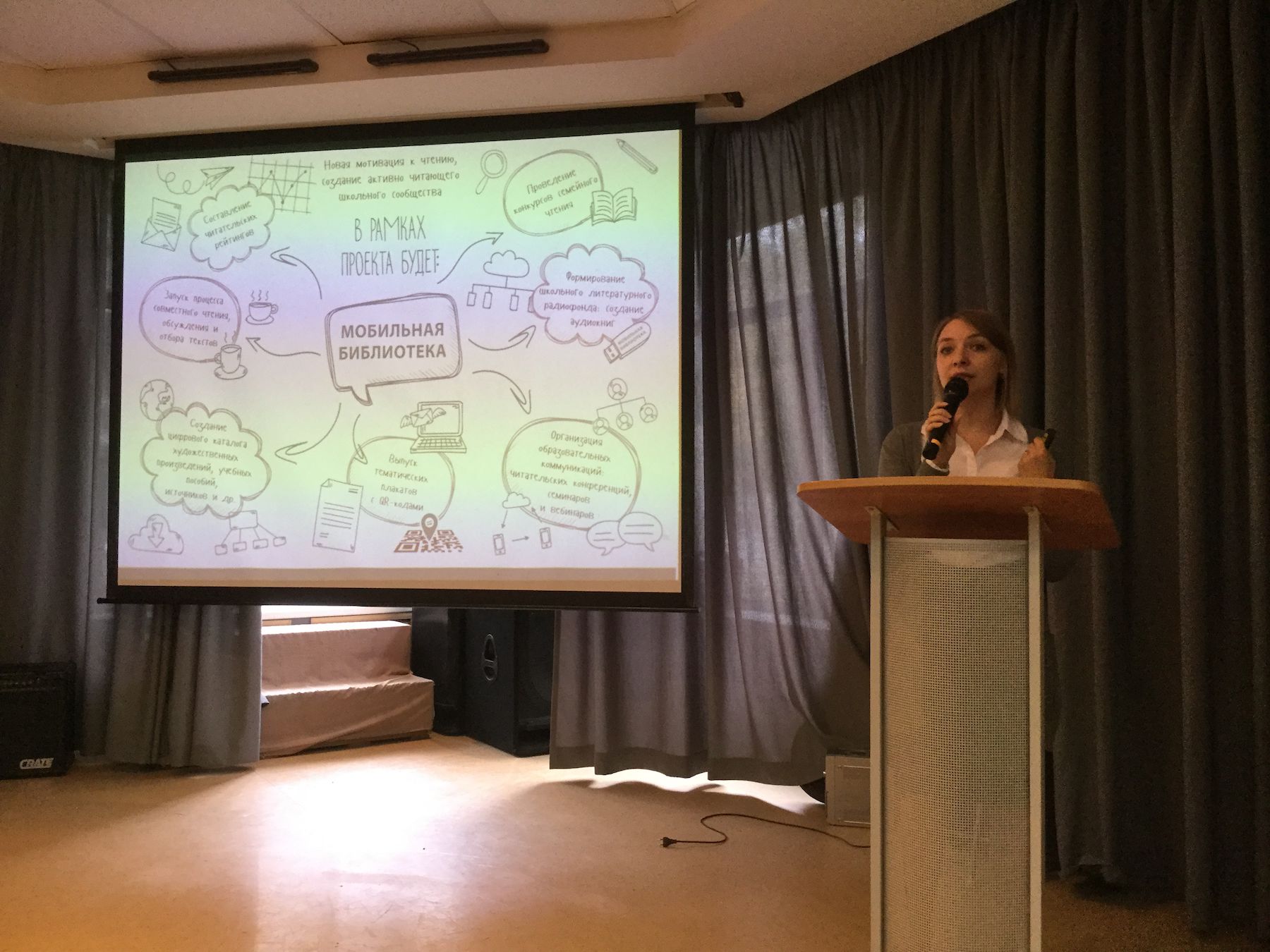 Юлия Павловна Абдулина, заведующая библиотекой гимназии № 210 «Корифей», поделилась информацией о конкурсных отборах (ФЦПРО 2016 – 2020 годы) по направлению 2.3 «Современная школьная библиотека: формирование инфраструктуры чтения» и 2.4 «Создание школьных информационно-библиотечных центров, отвечающих современным требованиям».