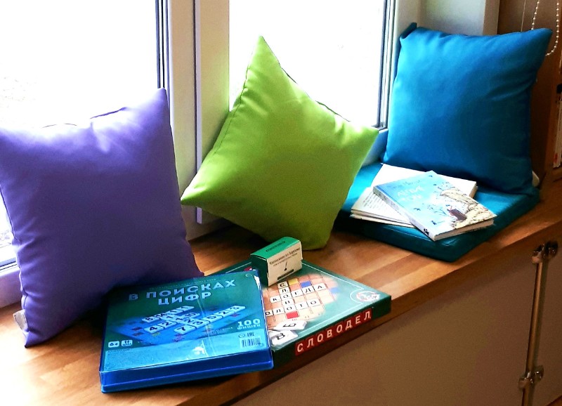 Весеннее настроение пришло в нашу библиотеку. Пусть на улице снова выпал снег, а у нас теперь можно с комфортом читать книги, забравшись на подоконник и откинувшись на яркие разноцветные подушки. Все удовольствия сразу - интересная захватывающая книга, отличный вид из окна, удобство и комфорт, который первыми оценили второклассники, ежедневно собирающиеся в библиотеке поиграть, почитать, поообщаться и даже поделать уроки.