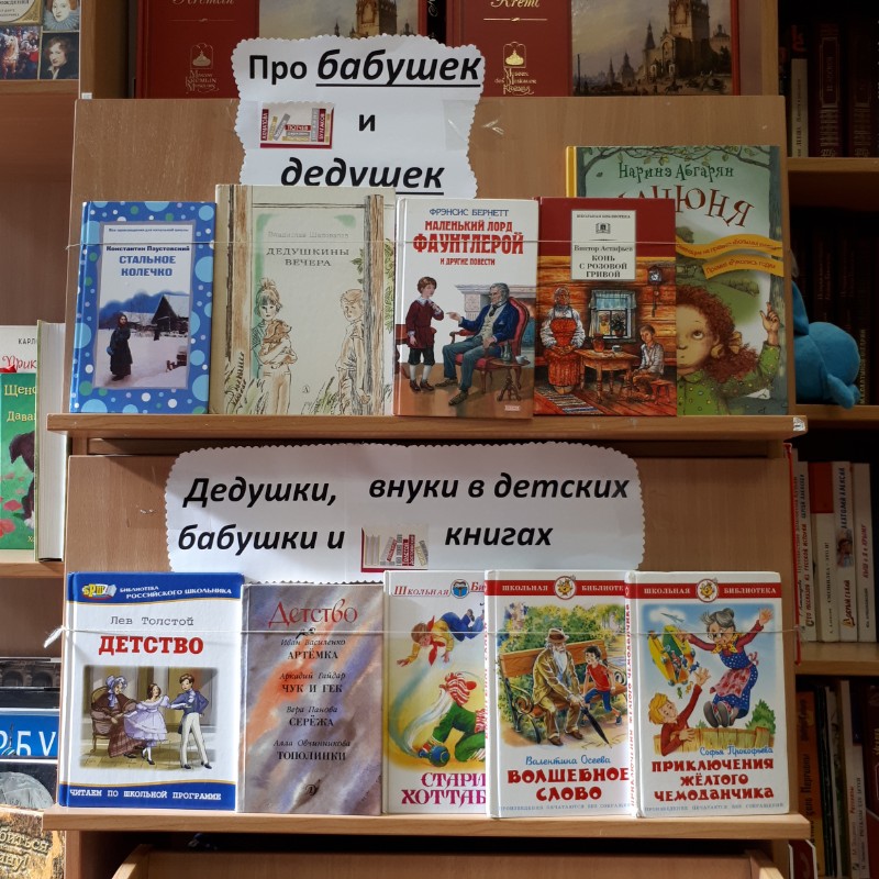 К Дню пожилого человека в библиотеке гимназии открылась тематическая выставка "Про бабушек и дедушек". Представленные на ней книги рассказывают о взаимоотношениях бабушек, дедушек с их внуками. Пусть эти отношения не всегда безоблачные, но они всегда пронизаны взаимной любовью и уважением.