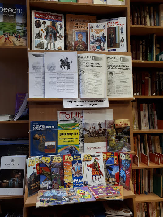 В преддверии Дня Российской армии в библиотеке гимназии открылась книжная выставка " Верный долгу и приказу русский труженник - солдат".