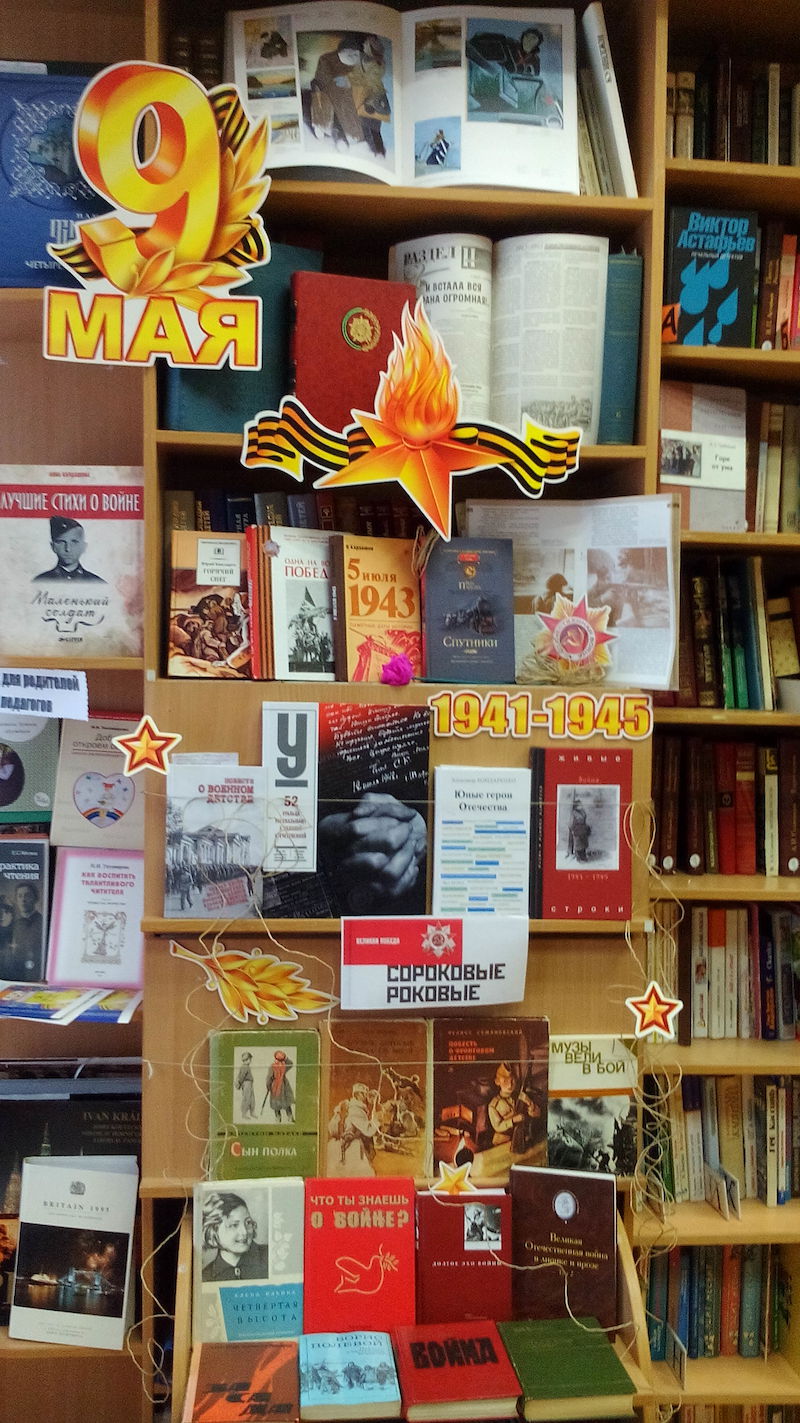 Приближается 72 годовщина со Дня Победы в Великой Отечественной войне. В честь этой даты в библиотеке оформлена выставка "Сороковые, роковые", на которой представлено несколько книг с рассказами из уст уральцев о войне и военном детстве. Маленькие читатели могут заинтересоваться книгами о подвигах юных героев в период Великой Отечественной войны. Воссоздать обстановку незабываемых дней суровых лет поможет книга с письмами фронтовиков под названием «Живые строки войны». Также книжная выставка включает в себя: стихи и песни, художественные произведения и журналы, энциклопедии и сценарии к Дню Победы. Материалы с выставки помогут читателям показать стойкость и мужество солдат в годы войны.