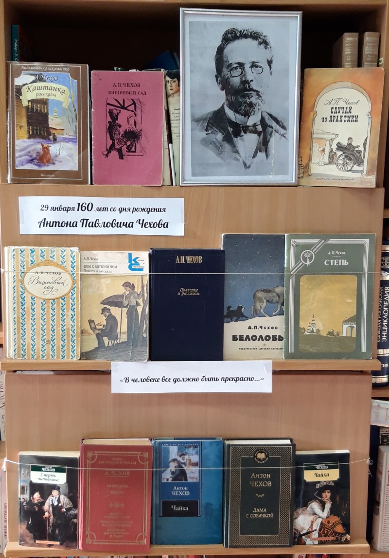 В честь этого знаменательного события в библиотеке оформлена книжная выставка "В человеке все должно быть прекрасно.. "
